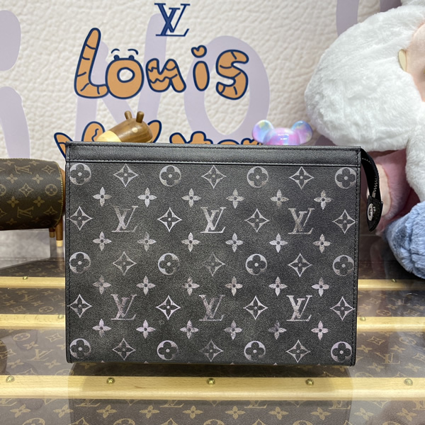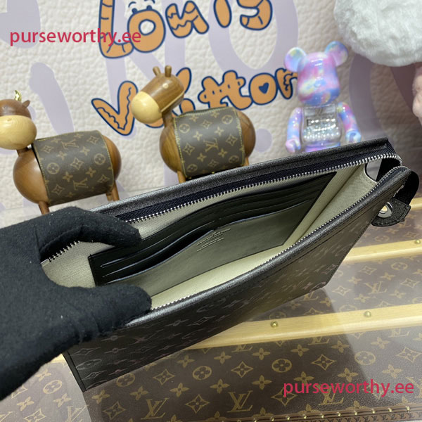 Made from Brushed Monogram leather, with its worn-out Monogram and the patina of time, this Pochette Voyage pouch is trimmed with black cowhide leather. The interior is lined with textile and features six card slots as well as an inside flat pocket. This handy travel pouch closes with a silver-toned zipper.