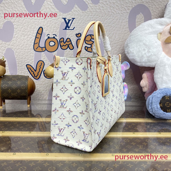 Part of the Nautical capsule, this OnTheGo MM is made from Monogram jacquard fabric, created with 66 different colored threads for a Monogram with a soft gradient of color. To ensure durability, the fabric is treated with an invisible protective coating. Each model comes with a laser-engraved mirror charm for on-the-go touch-ups.