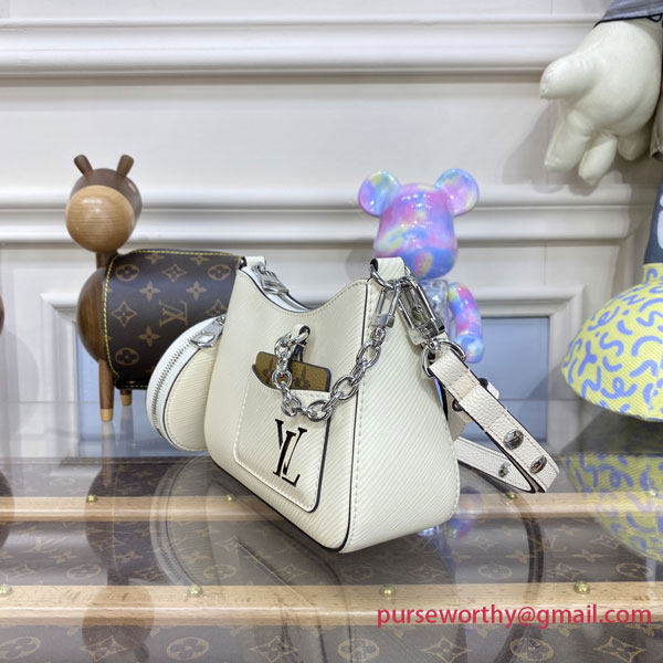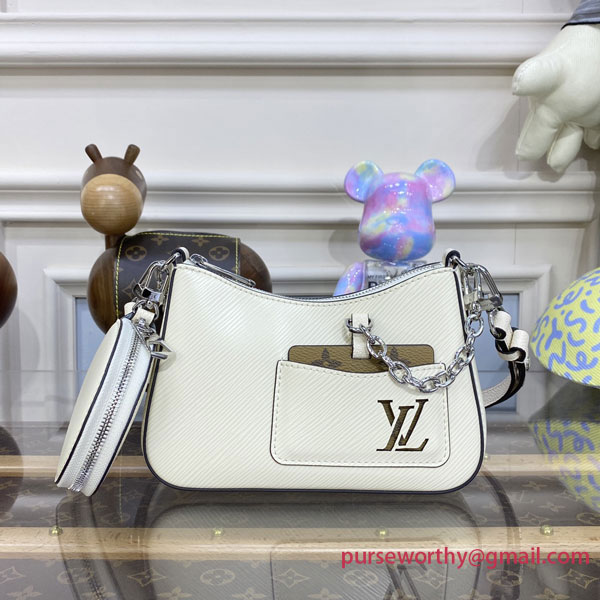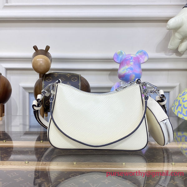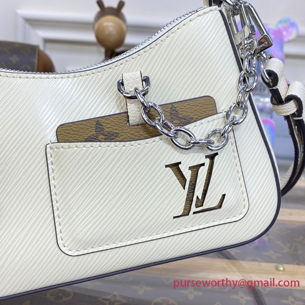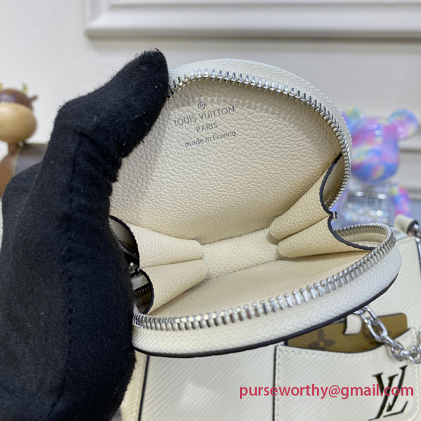 The Marellini handbag shares the sporty-chic signatures of the larger Marelle model, but in a charming mini format. Fashioned from the Maison’s classic Epi leather, this playful and versatile piece features a detachable round coin purse; a small mirror fits into the front pocket, hooked to the bag by a stylish silver-finish chain.