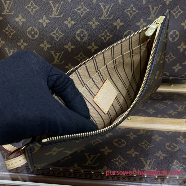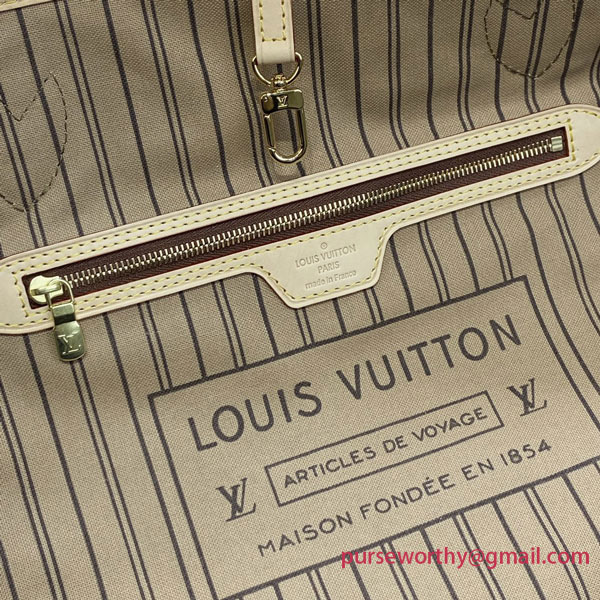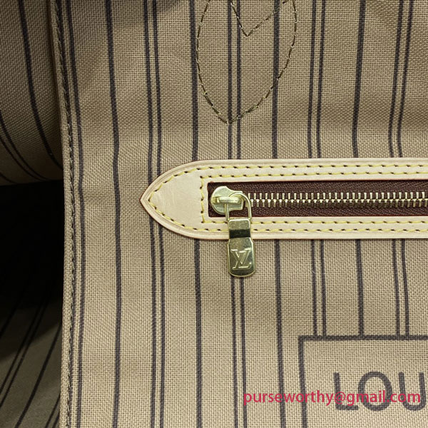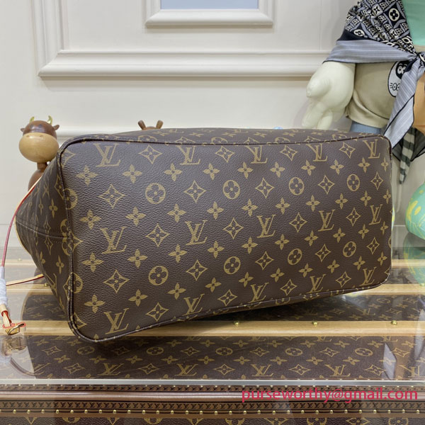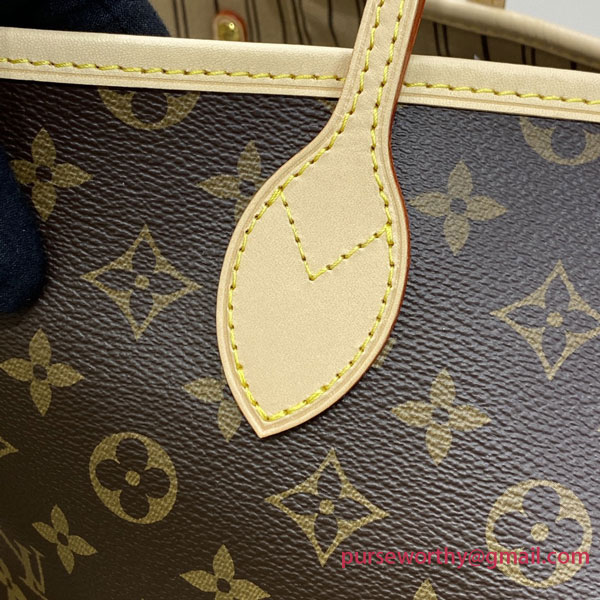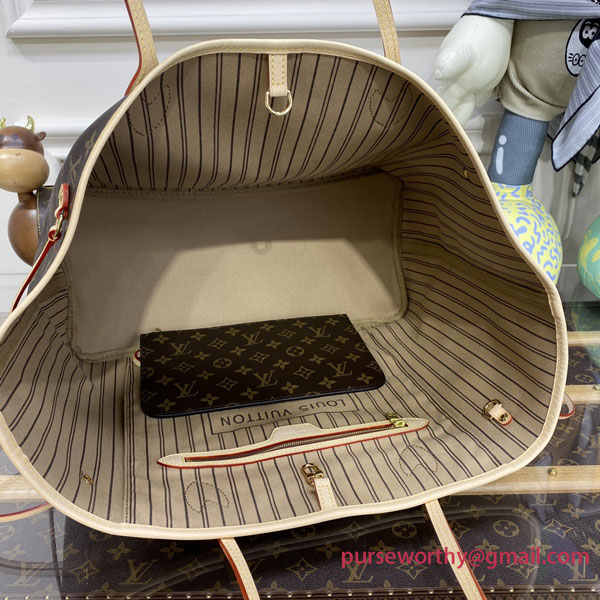 The Neverfull GM tote unites timeless design with heritage details. Made from supple Monogram canvas with natural cowhide trim, it is ultra-roomy but never bulky, with side laces that cinch for a sleek allure or loosen for a more casual look. Slim, comfortable handles slip easily over the shoulder or arm. Lined in colorful textile, it features a removable pouch which can serve as a clutch or an extra pocket.