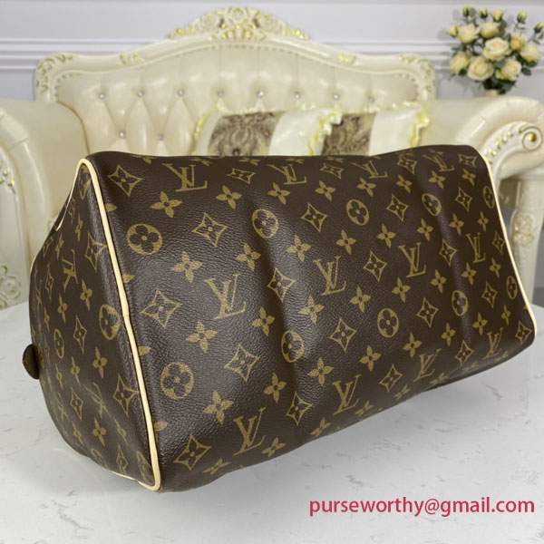 Made from classic Monogram canvas, the Speedy 35 is a stylish handbag for both travel and daily use. Launched in 1930 as the "Express" and inspired by that era's rapid transit, today’s updated Speedy remains a timeless House icon, with its unmistakable silhouette, rolled leather handles and engraved, signature padlock.