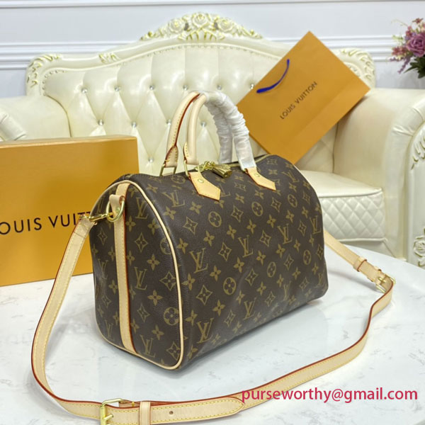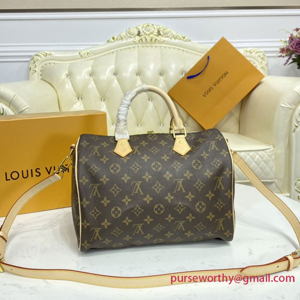 The Speedy Bandoulière 30 in signature Monogram canvas is an ideal city bag for every day. Originally created for travelers in the 1930s – the name refers to the era’s rapid transit – every feature of the Speedy’s design is iconic, from its unmistakable shape to the rolled leather handles, engraved padlock and detachable strap.