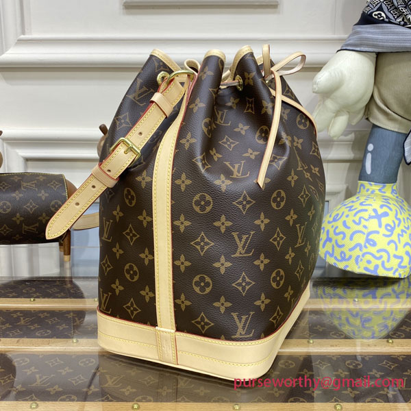 The Noé bucket bag harks back to a design from 1932. A Champagne producer asked Gaston-Louis Vuitton to develop a sturdy, stylish bag in which he could transport five bottles of bubbly. This model in body-friendly Monogram canvas retains key features of the original – the iconic shape, generous volume, drawstring closure – but is made for modern life. The leather strap adjusts for comfortable shoulder wear.