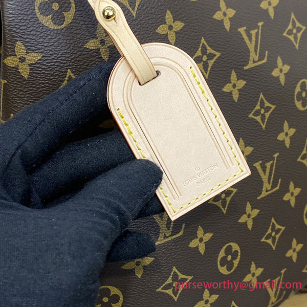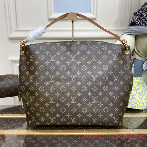 The Graceful MM hobo in classic Monogram canvas is an extra-roomy yet lightweight bag to carry every day. Natural cowhide leather detailing and shiny golden hardware add a refined, signature touch. The body-friendly design combines with a supple, flat handle for stylish and comfortable over-the-shoulder wear. The magnetic closure and zipped inside pocket keep belongings secure.