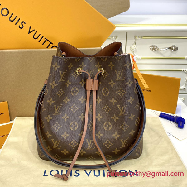 A true House icon, the NéoNoé bucket bag revisits a 1932 design by Gaston-Louis Vuitton. The original was created to transport bottles of Champagne in style; this modern version in Monogram canvas features a sleek shape, colorful leather trim and a matching bonded lining. The adjustable smart strap can be slung over the shoulder or lengthened for a trendy cross-body carry.
