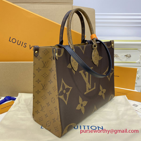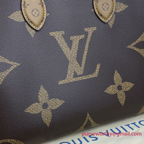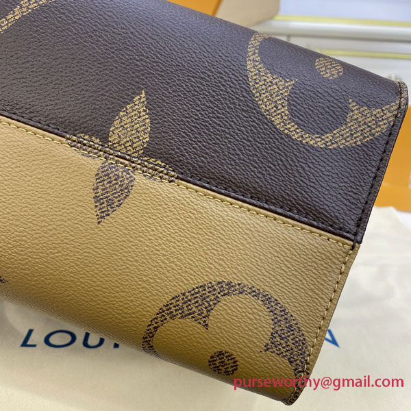 The name says it all: OnTheGo MM takes care of business or shopping, with plenty of room for a busy woman’s essentials. With Giant Monogram canvas on one side and Monogram Reverse on the other, it is virtually two bags in one. Twin Toron top handles and two shoulder straps offer several different carry styles, for extra versatility.