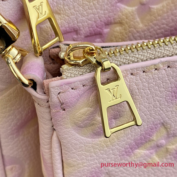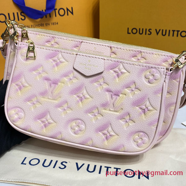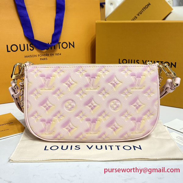 With a glimmering iridescent aspect, this Multi Pochette Accessoires cross-body bag is made from embossed Monogram Empreinte leather in a colorway achieved by a three-step spraying technique. Just the right size to carry a woman’s essentials, this practical bag combines two detachable pouches. It features both a removable chain and a detachable, adjustable strap.