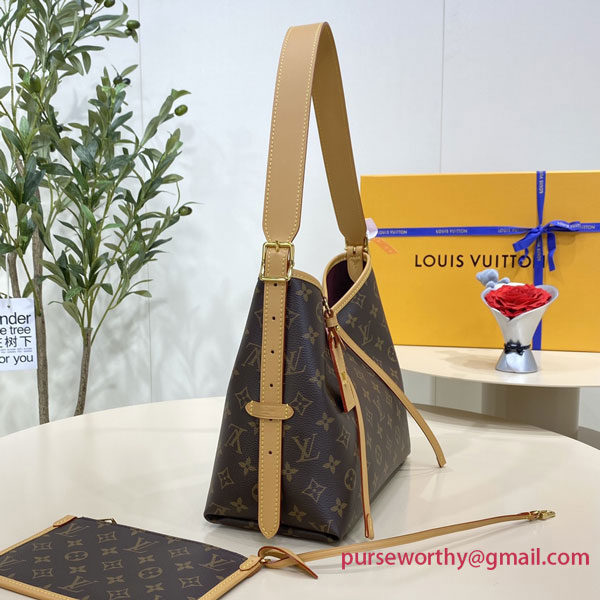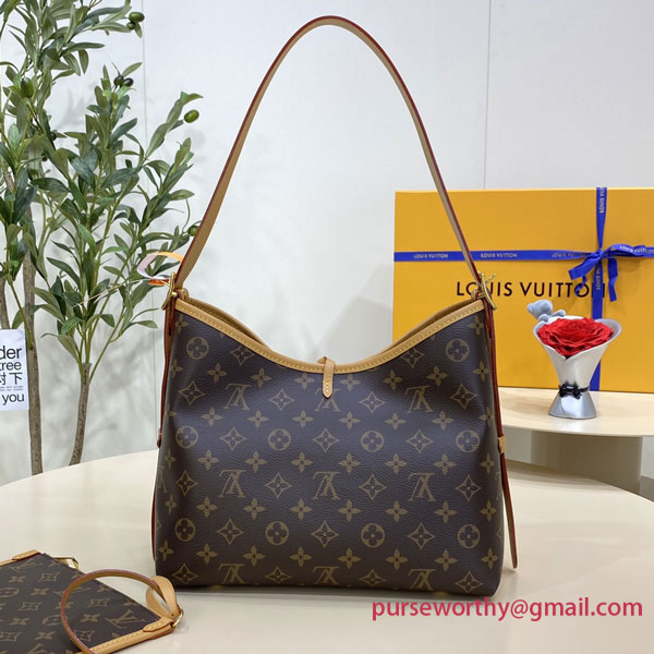 Combining allure with body-friendly design, the CarryAll PM handbag in Monogram canvas with natural leather trim is a go-everywhere city bag. Great storage capacity and a smartly designed interior, with two large inside pockets, makes it practical. A detachable zipped pouch, also in Monogram canvas, is attached to the bag by a leather strap.