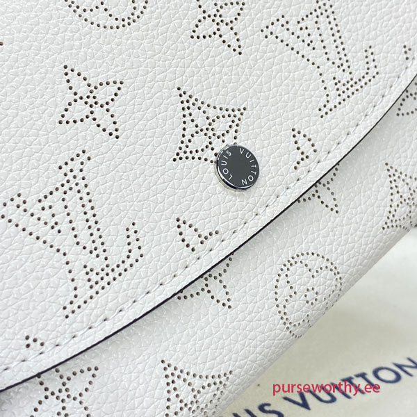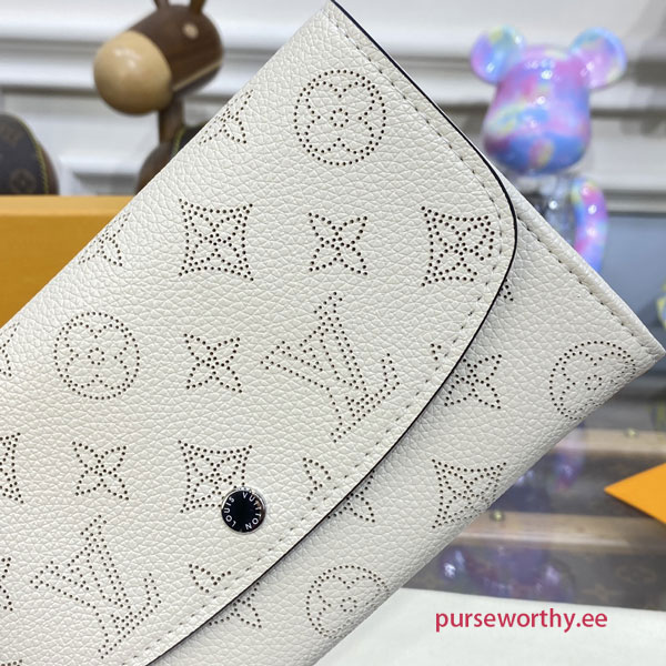In luxurious Mahina leather, the Iris Wallet is a refined accessory. Its sumptuously soft calfskin is enhanced with a perforated Monogram design and discreet press stud closing.