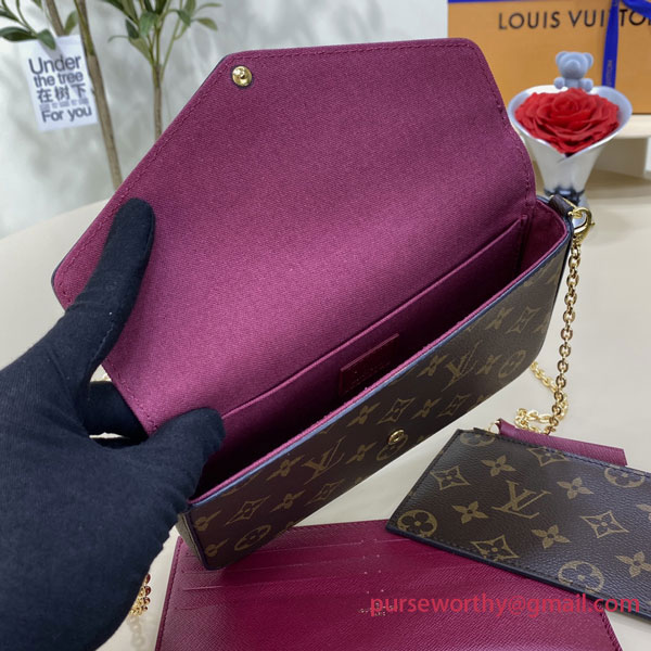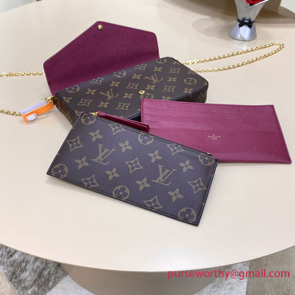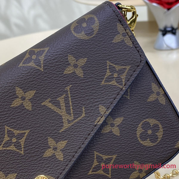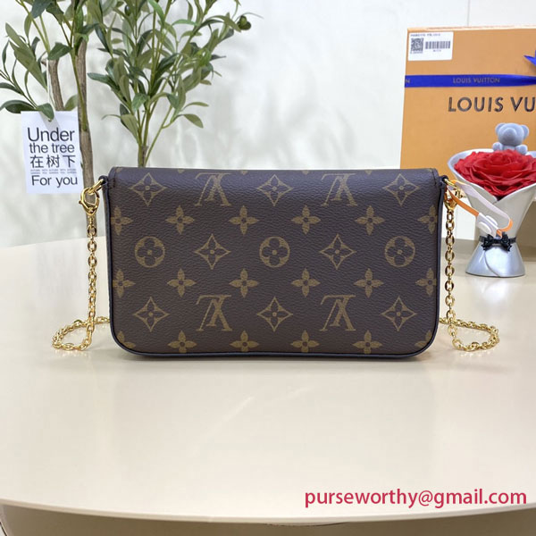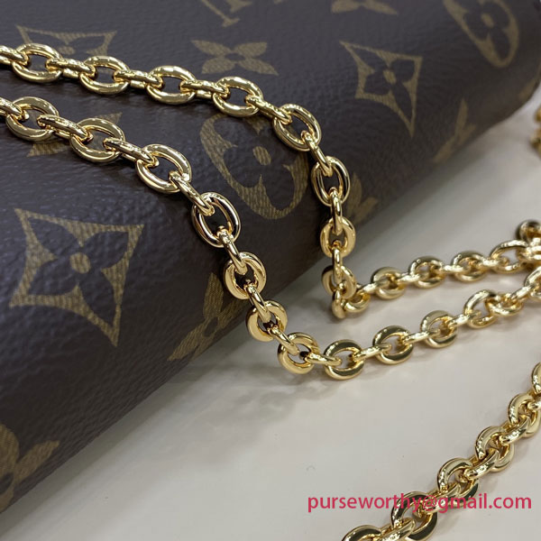 The Pochette Félicie in Monogram canvas is a stylish solution to carry and organize daily essentials. This versatile pouch features two removable pockets, including one with several card slots. It can be carried as a clutch or a shoulder bag thanks to a removable gold-tone chain.
