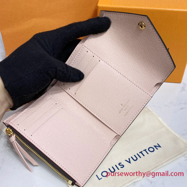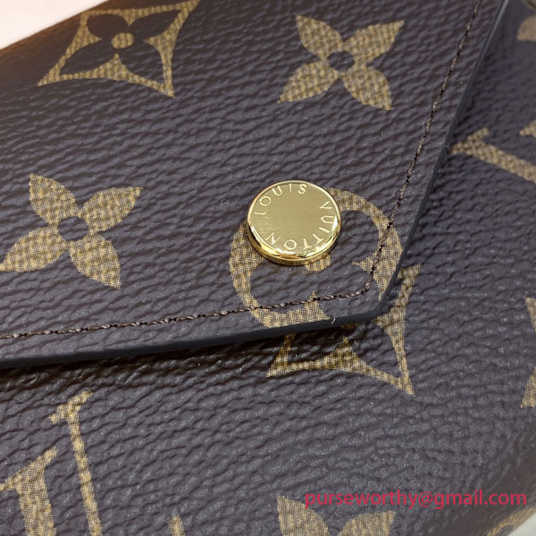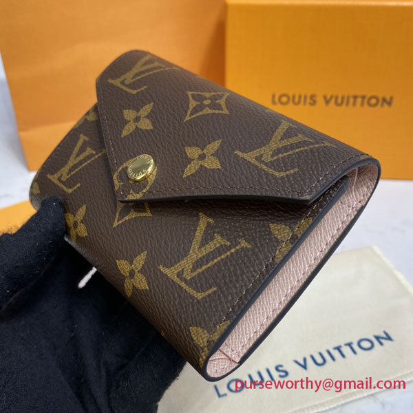 The compact Victorine wallet in Monogram canvas combines femininity and functionality. It opens out to reveal many practical features, including card slots and pockets for bills and coins. Its envelope-style flap is sealed with a press-stud.