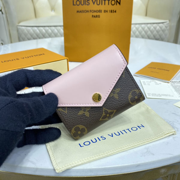 The Zoé wallet is the perfect mini companion: small enough to fit into even a tiny bag or clutch, yet spacious enough to hold coins, notes and credit cards. Its appeal is enhanced by its stylish combination of Monogram canvas and colored leather, finished off with a gold-tone Louis Vuitton press-stud.
