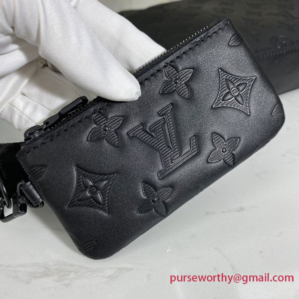 Fashioned from Monogram Shadow leather, the Duo Messenger bag is a hybrid cross-body bag for men with a removable coin purse attached to the strap. Discreetly embossed with the iconic Monogram pattern, Monogram Shadow leather brings an understated elegance to this bag’s modern design. The strap’s textile strap features a woven tone-to-tone “Louis Vuitton”.