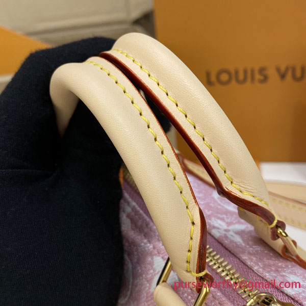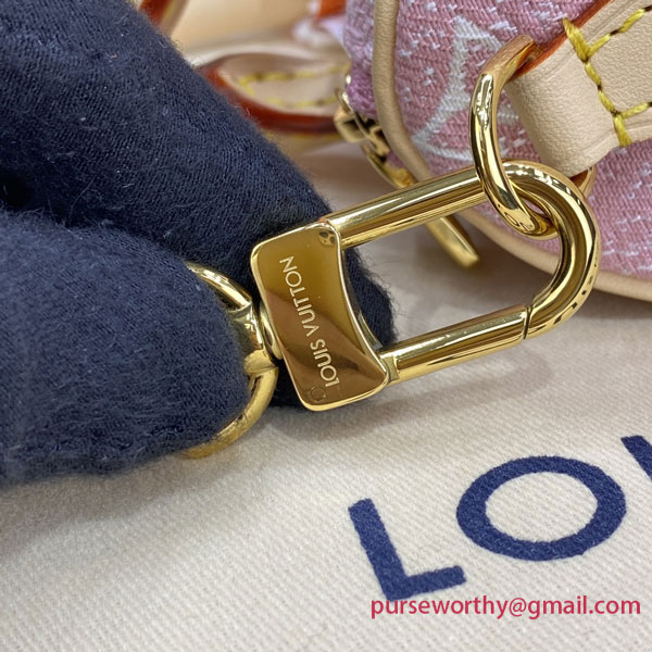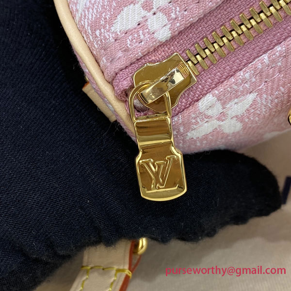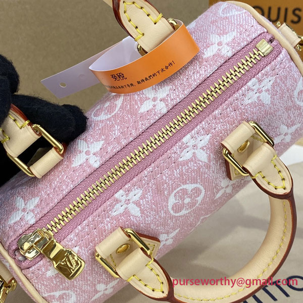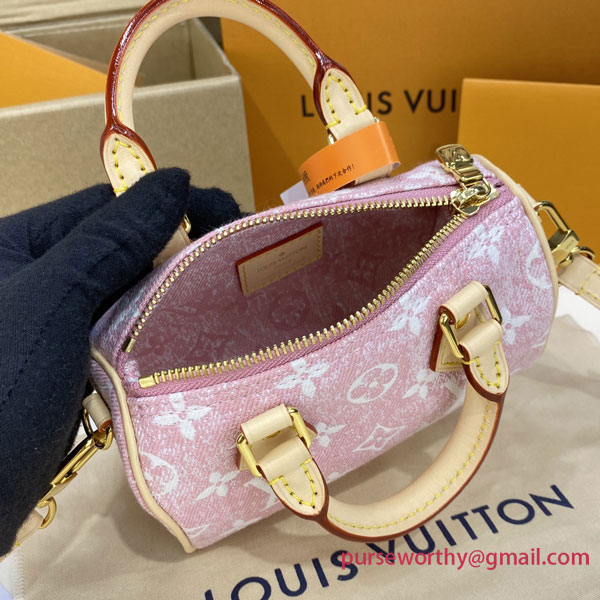 The Nano Speedy in Monogram jacquard denim is a perfect miniature version of Louis Vuitton's iconic Speedy bag. The jacquard weaving technique recreates both the Monogram pattern and the material's stone-washed effect. A stylish way to carry essentials, this model features two handles and a long strap for shoulder or cross-body wear.