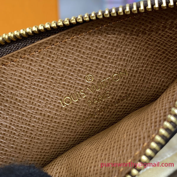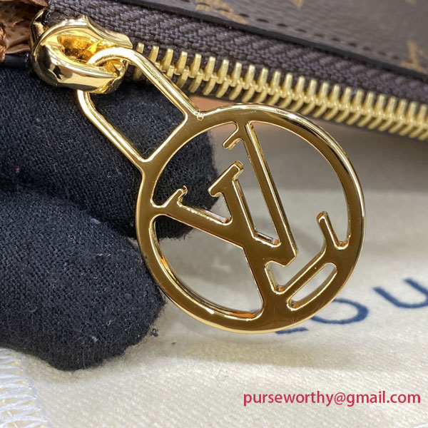 Modern and multifunctional, the Romy Card holder unites the simplicity of a card case with the utility of a zipped, gusseted pouch that is ideal for holding loose cash, coins or receipts. This new model is meticulously crafted from Monogram canvas, accented with a colorful leather lining and a signature LV Circle zip pull in gold-finish metal.