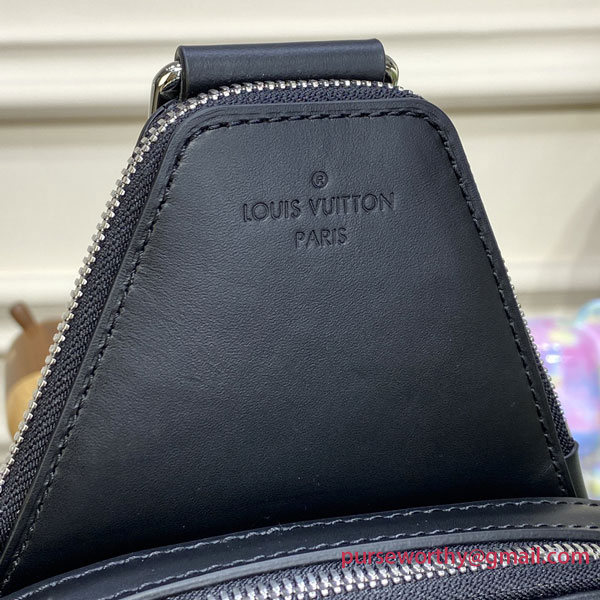 The Avenue Slingbag is made from Damier Graphite canvas with a Louis Vuitton Paris leather patch on the front outside pocket, bringing a contemporary twist. The adjustable nylon strap can be attached to the D-ring on right or left side of the bag. It’s more sustainable than earlier models, thanks to its canvas strap and lining.