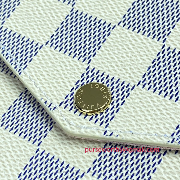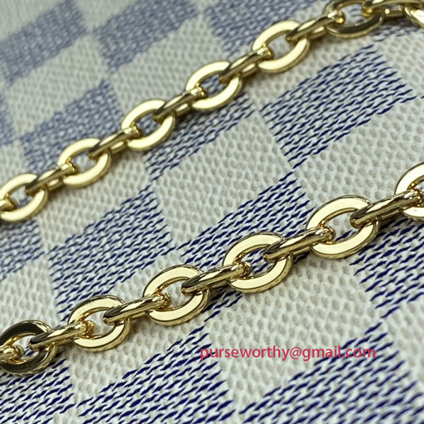 The Pochette Félicie in Damier Azur canvas is a versatile pouch for modern lifestyles. Its envelope-style flap opens to reveal a spacious compartment with two removable pockets: one zipped, another with several card slots. It can be carried on the shoulder or across the body, or - with the chain removed - as a clutch.