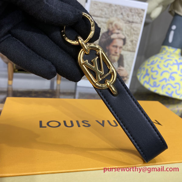 The LV Link Dragonne offers a modern reinterpretation of the iconic LV signature, combining gleaming hardware with smooth leather. It is comprised of an understated strap lined with a contrasting Monogram canvas, showcasing the House's artisanal expertise. The keyring is adorned with an LV Link charm at the top.
