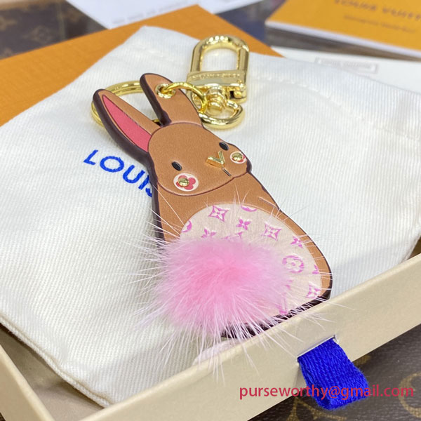The delightful LV Bunny key holder is the perfect gift to commemorate the Lunar New Year. To honor the Year of the Rabbit, a bunny-shaped charm features a Monogram-embossed body, Monogram Flower cheeks and a perky Essential V nose. The accessory is finished with gleaming hardware and an irresistibly fluffy mink tail.