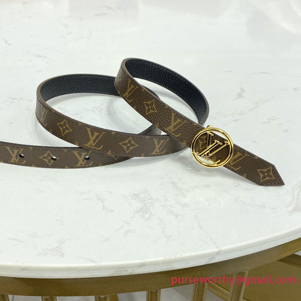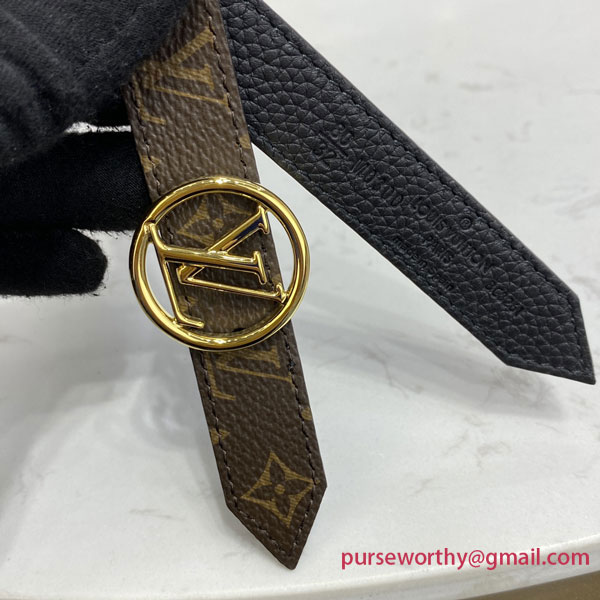The LV Circle reversible belt is detailed with a striking LV Circle logo buckle. The strap is available in black Epi leather and in signature Monogram canvas, each with a contrasting effect on the reverse and different buckle colors. This is a reinterpretation of an iconic style, updated in new combinations and with sleek finishes.