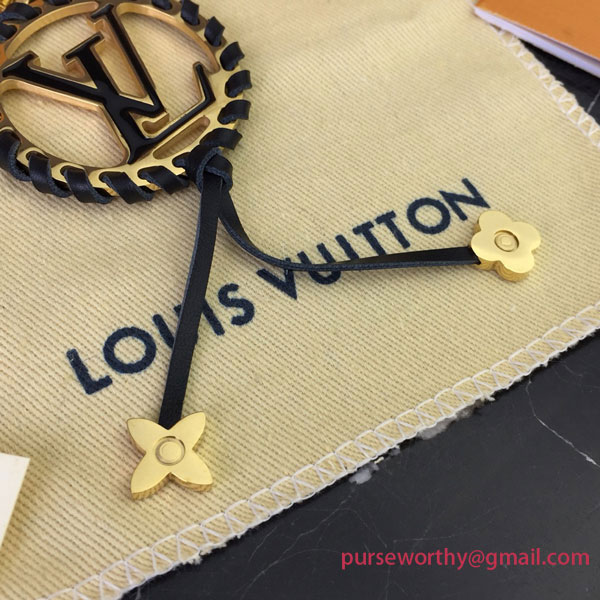 The Very bag charm and key holder spotlights the LV Circle signature, which is inlaid with colored enamel and embellished with a matching leather braid ending in two Monogram Flower charms. This intricate design references Louis Vuitton's heritage of craftsmanship and coordinates with the Very leather goods line.