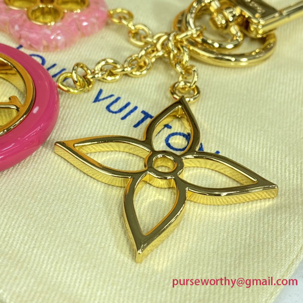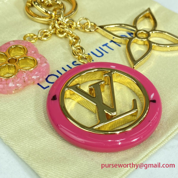 This feminine bag charm reinterprets the Maison's Monogram Flowers and the LV Initials signature in a light and colorful spirit. It is the perfect companion to any bag, and can be used both as a bag charm or a key holder.