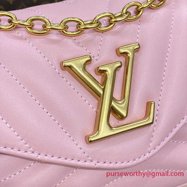 Made from quilted calf leather, the New Wave Chain Bag PM’s unique shape, curved and padded, make it very comfortable to carry. The feminine colorway and gold-color LV Initials complete the glamourous design. The sliding gold-color chain can be adjusted for short- and long-shoulder wear, as well as cross-body carry.