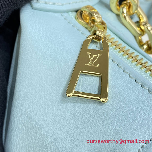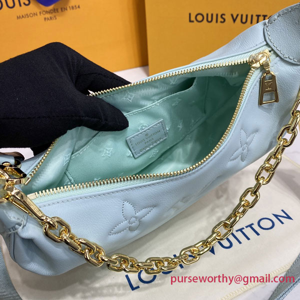 Inspired by dreamy summer hues, the Bubblegram capsule brings two new vibrant shades to the Over The Moon handbag in quilted calf leather with an embroidered Monogram pattern. The adjustable strap and gold-color chain enable elbow, short-shoulder, cross-body, and long-shoulder carry. The strap can even be detached and the bag carried as a clutch.