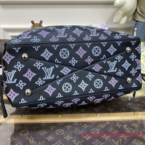 The Bella Tote is made from perforated Mahina calf leather, with gradient pink and cream highlighting the Monogram pattern. A supple and travel-friendly bag, it’s comfortable to carry and easily holds essentials. It’s equipped with two leather top handles as well as an adjustable and removable strap.