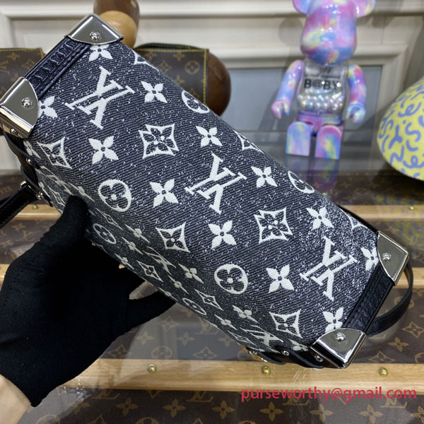 The new Side Trunk handbag is crafted from Monogram Jacquard Denim. Introduced on the Cruise 2023 runway, the stone-washed effect canvas puts a fresh spin on the Maison’s signature pattern. The material’s deliberate rawness highlights the bag’s sophisticated embossed leather trim and polished hardware, inspired by heritage trunks. Both handle and strap are removable, for a variety of styling options.