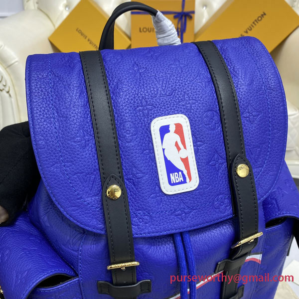 This Christopher MM backpack in Monogram-embossed Taurillon leather is the latest from the collab between Louis Vuitton and the NBA. The supple leather, in the NBA’s instantly recognizable blue, is adorned with the new LV Basketball logo and the iconic NBA patch. Black-leather trim and shoulder straps complete the design.