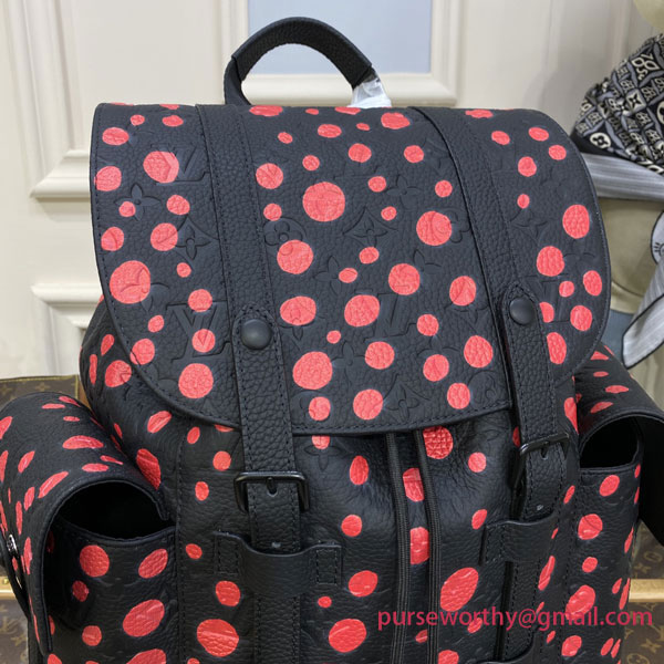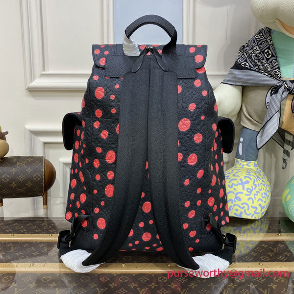 The LVxYK Christopher backpack is part of the extraordinary Louis Vuitton x Yayoi Kusama collectsion, the continuation of the House’s close partnership with the influential Japanese artist. Echoing Kusama’s obsession with endless arrays of dots, this version of the LVxYK Christopher features the “Infinity Dots” print in red on black Taurillon Monogram leather. More than a practical backpack, an ode to art and hand craftsmanship.