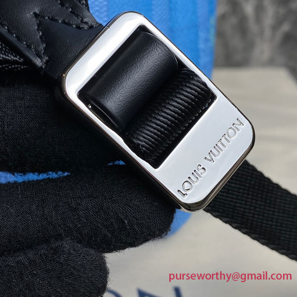 The Discovery Backpack looks fresh in the gradient blues of Damier Stripes canvas, a reimagining of the stripes found on vintage Louis Vuitton trunks. The fading stripes, together with the new leather patch, inspired by the signage on the sides of Louis Vuitton historic trucks, bring a contemporary feel to this backpack’s boxy shape.