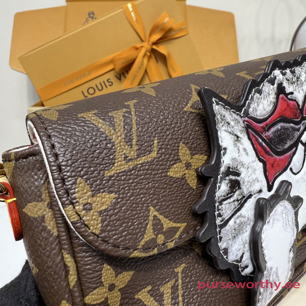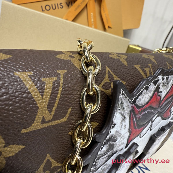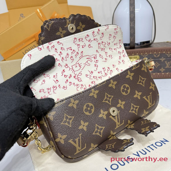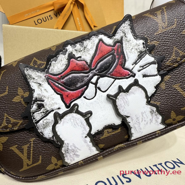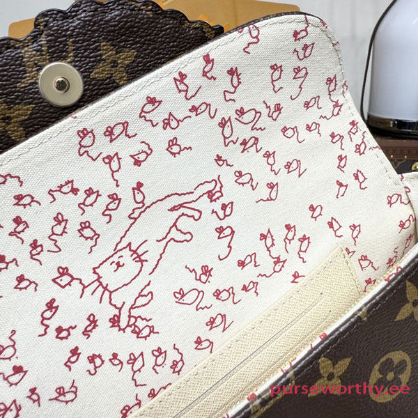 The exclusive LV Travels With Grace Coddington collectsion presents this charming edition of the Wallet On Chain Ivy. Paying tribute to her love of cats, Coddington is the artist behind the playful hand-drawn illustration across the front. Crafted from signature Monogram canvas, it is adorned with gold-toned hardware including a sleek removable chain offering multiple carry options. Inside, it is fitted with a zipped and flat pocket, plus three card slots.