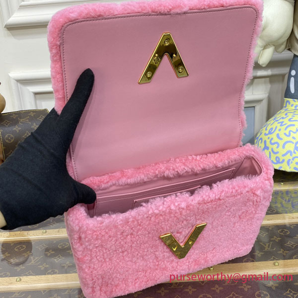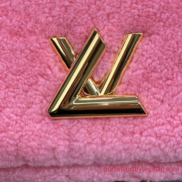 A fresh bright colorway brings an eye-catching aspect to this Twist MM hand bag in shearling. The bag is adorned with a removable silver-color double chain featuring an enamel Monogram Flower charm. The chain and leather strap are both removable to enable multiple attitudes and carry options.