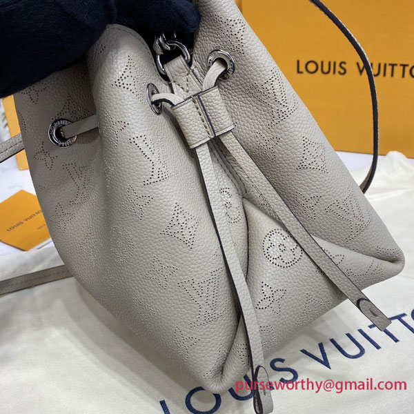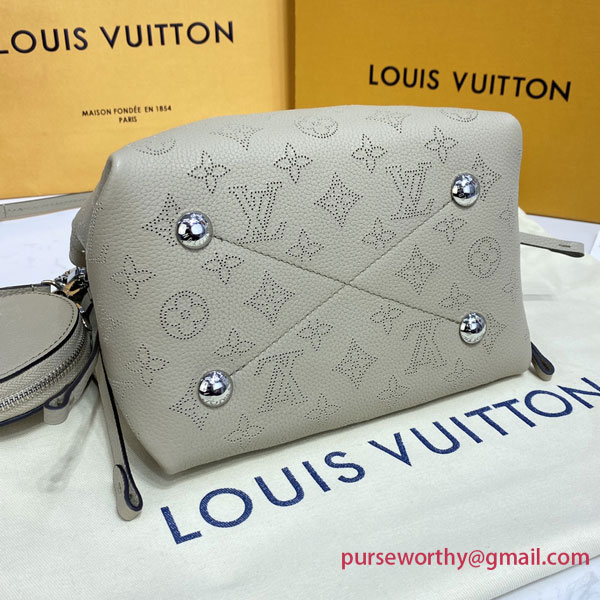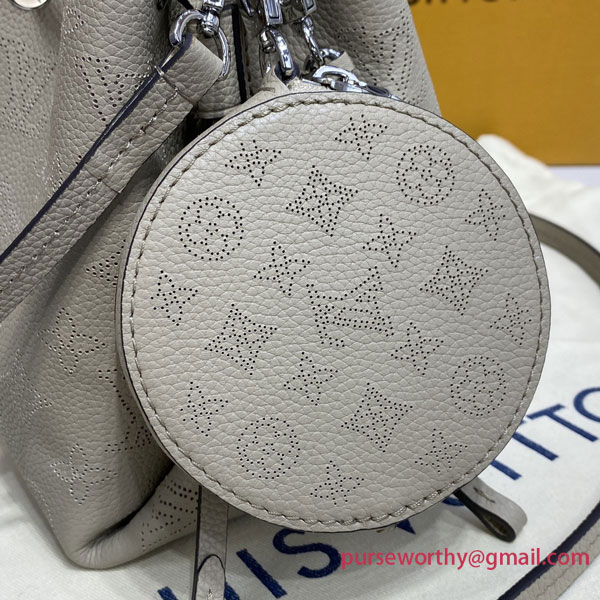 Louis Vuitton unveils the Bella bucket bag in Mahina calf leather with its perforated Monogram pattern. The bag’s small size and the attached round coin purse, featuring a miniature version of the perforated Monogram motif on one side, make it modern, desirable and trendy. The sophisticated leather and metal mixed handle associated with a removable leather strap bring versatility.