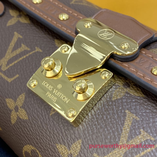 Nicolas Ghesquière introduces a new shape – both feminine and casual – inspired by Louis Vuitton’s archives: the Papillon Trunk handbag. The iconic Papillon duffle bag is transformed into a trendy semi-rigid baguette. The S-Lock, LV-embossed trunk trimmings and studs pay homage to the House’s trunkmaking beginnings.
