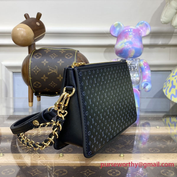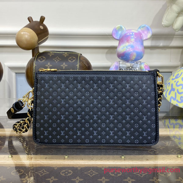 The Lexington pouch is part of the Nanogram leather-goods edition, which was seen at Louis Vuitton's Spring-Summer 2023 fashion show. It comes in soft calfskin embossed with a miniature version of the iconic Monogram pattern, creating a subtle two-tone effect. This neat zipped pouch offers different carry options thanks to its removable, braided chain and removable, adjustable strap.