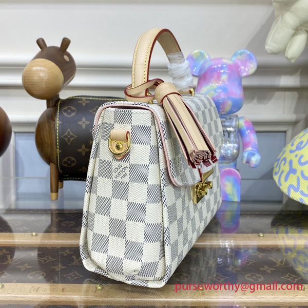 A compact bag with modern lines, the Croisette in summery Damier Azur canvas boasts sophisticated details (note the signature S-lock) and a casual-chic allure. The removable leather tassel adds a touch of fun. Sized to fit the essentials plus a long wallet, this versatile piece can be hand-carried, slung over the shoulder or worn cross-body.