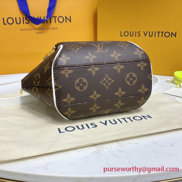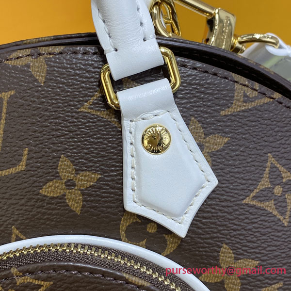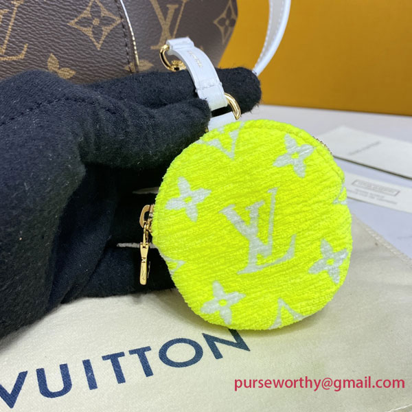 Inspired by a design from 1997, Nicolas Ghesquière created the Ellipse BB handbag, with its distinctive curved shape and leather piping. The Ellipse is made from Monogram canvas with trim and leather handles in white cowhide. Its smaller proportions and unique form are perfectly completed by the Round Zippy Coin Purse in tennis-ball yellow.