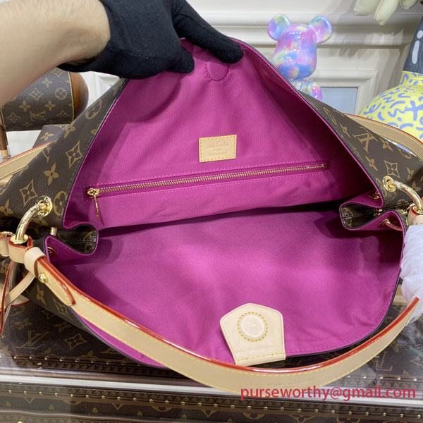 The Graceful MM hobo in classic Monogram canvas is an extra-roomy yet lightweight bag to carry every day. Natural cowhide leather detailing and shiny golden hardware add a refined, signature touch. The body-friendly design combines with a supple, flat handle for stylish and comfortable over-the-shoulder wear. The magnetic closure and zipped inside pocket keep belongings secure.
