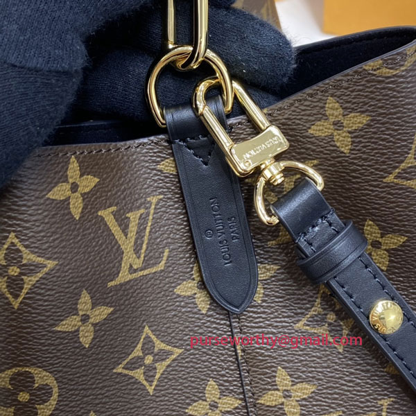 A true House icon, the NéoNoé bucket bag revisits a 1932 design by Gaston-Louis Vuitton. The original was created to transport bottles of Champagne in style; this modern version in Monogram canvas features a sleek shape, colorful leather trim and a matching bonded lining. The adjustable smart strap can be slung over the shoulder or lengthened for a trendy cross-body carry.