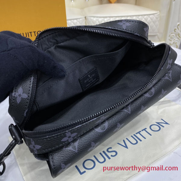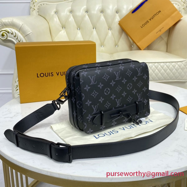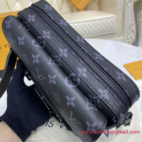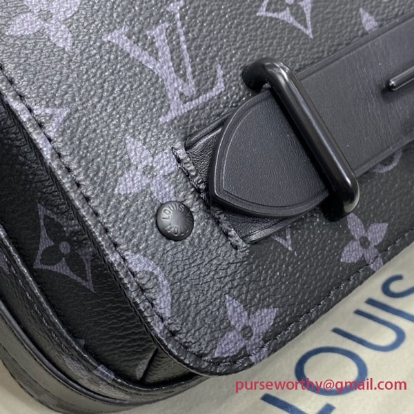 The new Steamer Messenger brings a sophisticated touch of Louis Vuitton heritage to the New Classics collectsion. The House’s iconic Monogram Eclipse canvas is accented by signature features like a steamer-style chain. Easy to carry with its removable strap, it offers a spacious zipped compartment plus a front flap pocket with a secure magnetic closure.