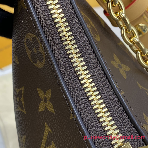 The versatile Boulogne handbag is made from classic Monogram canvas and features a removable strap, enabling cross-body, long-shoulder and short-shoulder carry. Without its strap, the Boulogne becomes a small chain bag or clutch for more formal occasions. It has a double-zip opening and an inside flat pocket large enough for an iPhone 12 Pro.