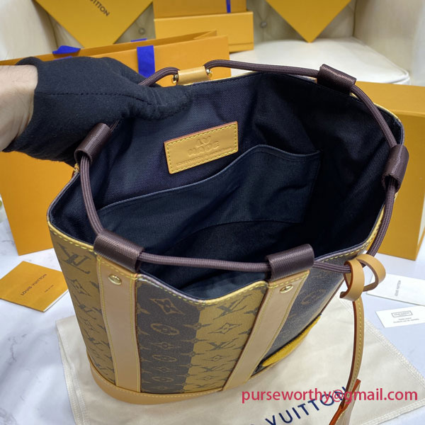 Inspired by the House’s Sac Marin from 1927, Virgil Abloh and Japanese streetwear designer Nigo team up to create the Randonnée Messenger bag in Monogram Stripes canvas. The bag is fashioned from a reimagining of the iconic Monogram canvas in which the LVs and Monogram Flowers appear on two-tone brown canvas.