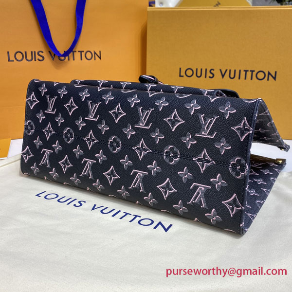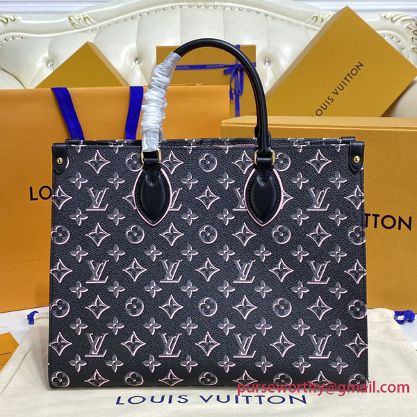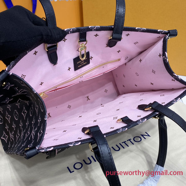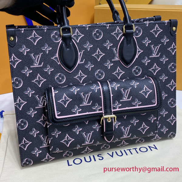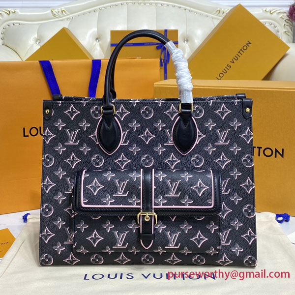 The OnTheGo MM tote bag is fashioned from colored Monogram canvas with a retro feel and features an outside pocket on the front that closes with a buckle and strap. The interior boasts a complementary-colored textile lining and a zipped double pocket. Its two sets of handles, short and long, give multiple carrying options.