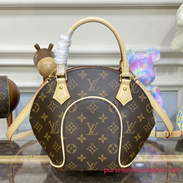 A rare archive model inspired the Ellipse PM handbag. This modernized edition is crafted from the classic mix of Monogram canvas trimmed with natural leather and gold-finish hardware. The bag’s on-trend silhouette and appealing vintage vibe make it a fashionable choice for everyday wear. The detachable strap can be adjusted for on-the-shoulder or cross-body styling.