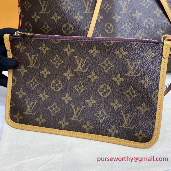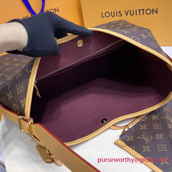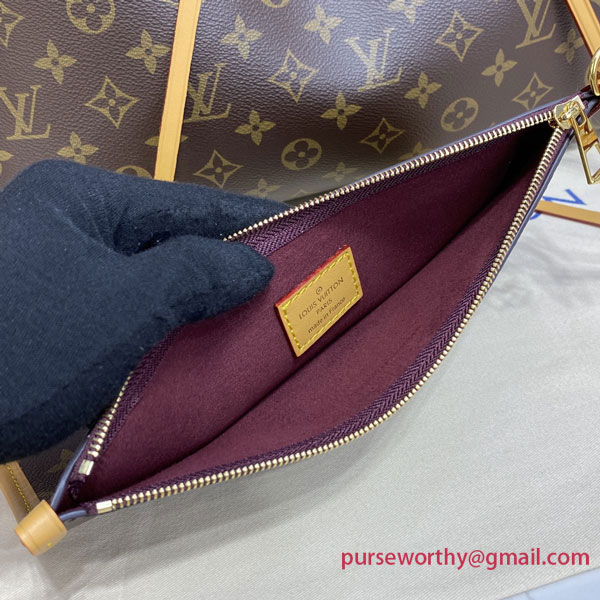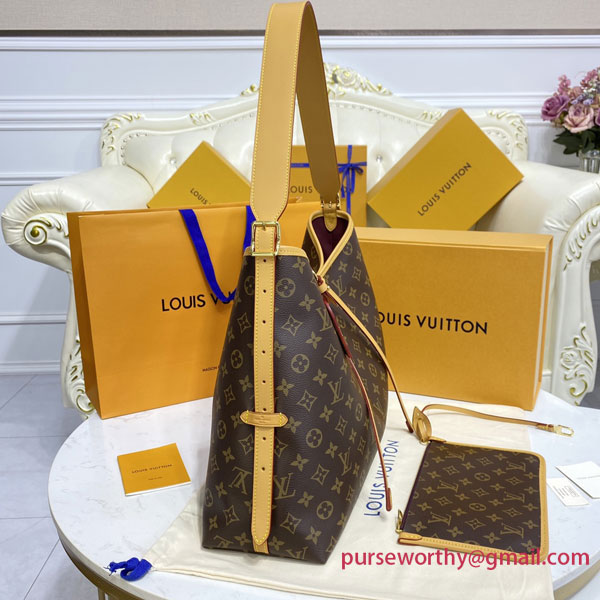 Louis Vuitton launches the CarryAll MM handbag in Monogram canvas with natural leather trim. Its contemporary, body-friendly design and roomy interior make this a fantastic everyday bag. Inside zipped pockets and a removable zipped pouch deliver even more functionality. A gold-color buckle allows the handle to be shortened or lengthened.