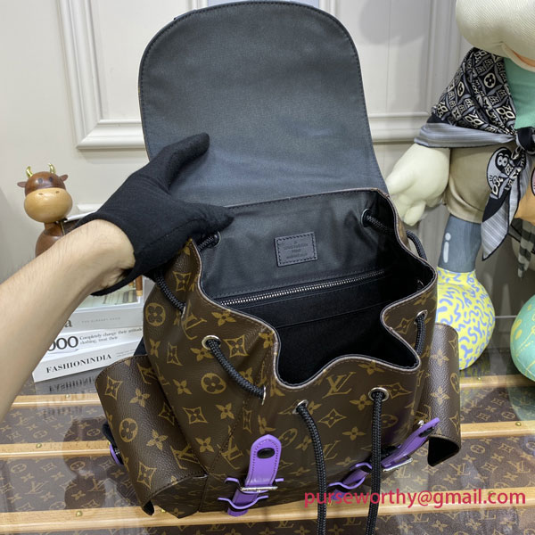 This new compact version of the Christopher Backpack features all of the refined details of the larger model, from the side pockets to the distinctive double straps with snap closures. Styled in Monogram Macassar canvas accented with eye-catching purple cowhide, it’s the contemporary way to carry everyday essentials, and even has a special tablet computer compartment.