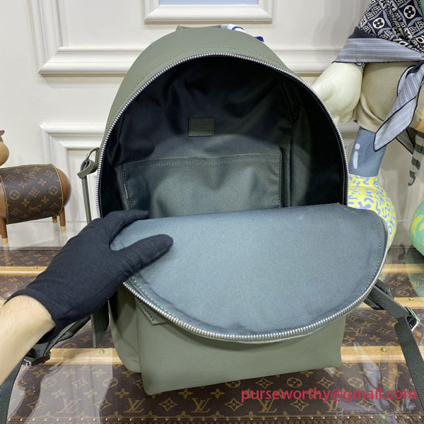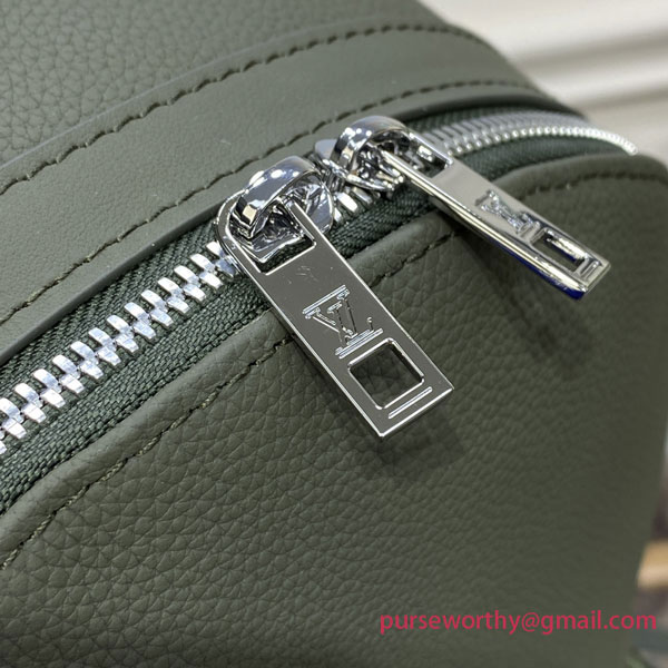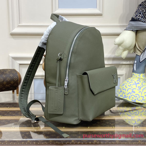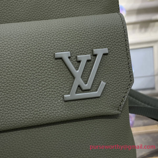 Comfortable and practical, this new backpack emanates discreet contemporary elegance. Crafted in supple LV Aerogram leather in a cool shade of khaki, it celebrates the spirit of travel and aviation with details including a stamp-like signature tag and beveled corners on the front flap, recalling an old-fashioned aerogram.